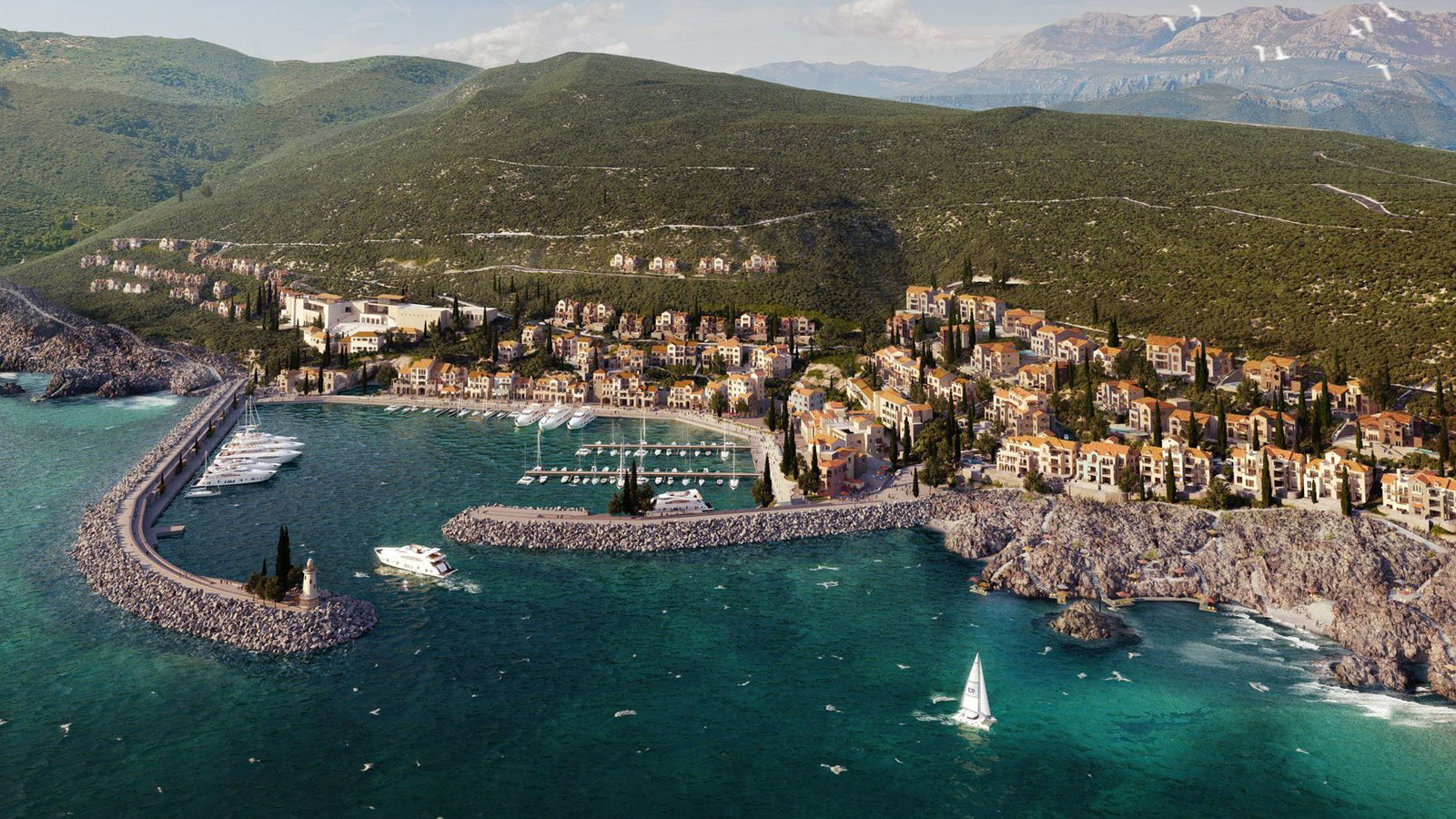 The Luštica peninsula on the Adriatic Sea is located on the right of the entrance to the Bay of Kotor. The major towns in the area are Herceg Novi and Tivat. Several small villages combine to form this peninsula.